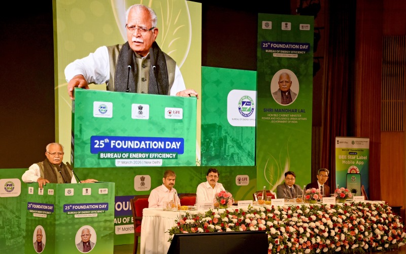 Minister of Power and Housing & Urban Affairs Shri Manohar Lal addressing the gathering during the 25th Foundation day celebrations of Bureau of Energy Efficiency (BEE) on 1 March 2026 in New Delhi. Senior officials from Central Ministries, State Governments, State Designated Agencies (SDAs) and partner institutions were also present.