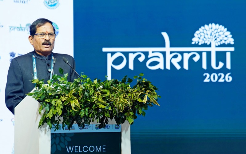 Minister of State for Power and New & Renewable Energy Shripad Yesso Naik addressing Prakriti 2026, the Second International Conference on Carbon Markets during Bharat Electricity Summit 2026 on 21 March, 2026 in New Delhi.